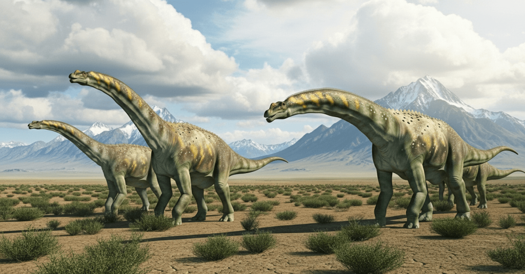 アルゼンチノサウルスが生息していたのは、約9,700万から約9,350万年前の後期白亜紀にあたる時代です。