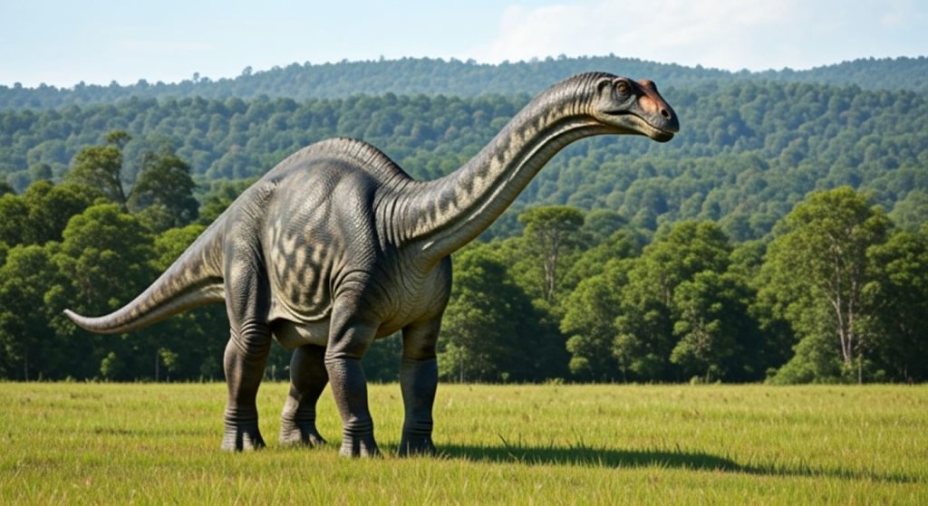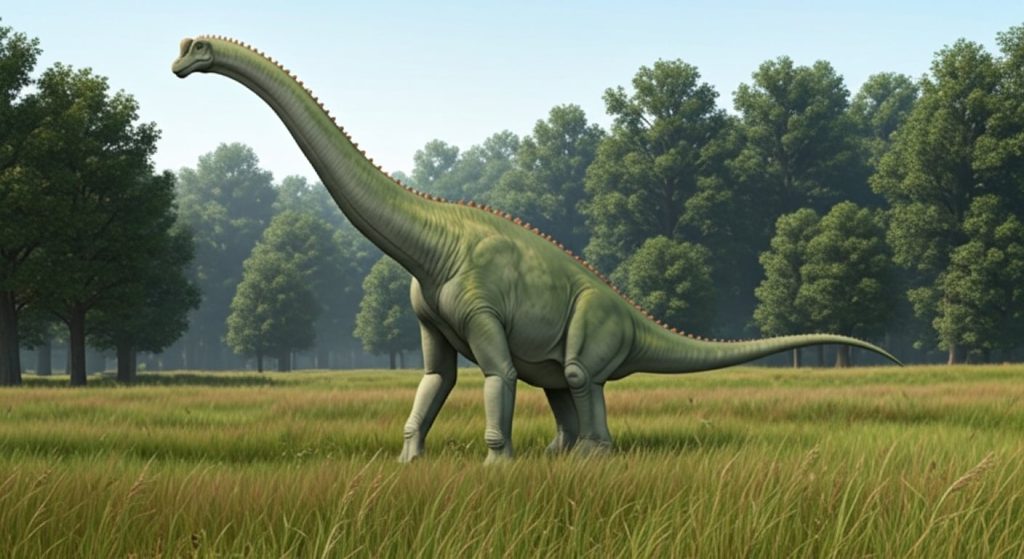 - 体型: 後脚よりも前脚が長く、ブラキオサウルス科の特徴をよく表しています。