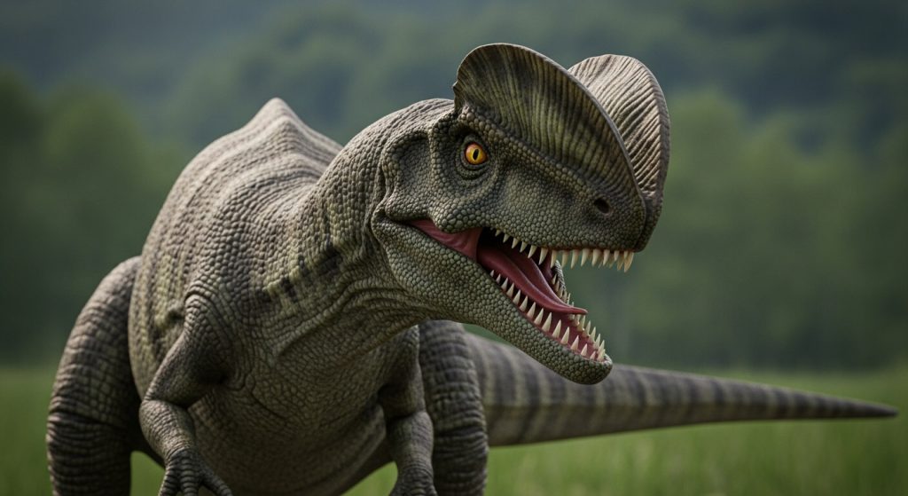 - 創作の理由: 前述の通り、初期の研究でディロフォサウルスの顎が「貧弱」であるという説がありました。クライトン氏は、貧弱な顎を補い、大型の獲物を仕留める手段として「麻痺作用のある毒液を唾液腺から分泌し、吐きつけて狩りをする」という設定を考案しました。