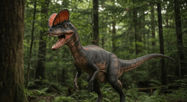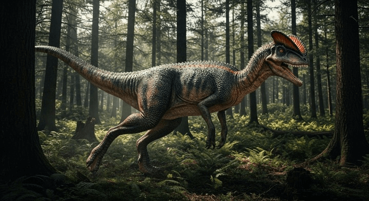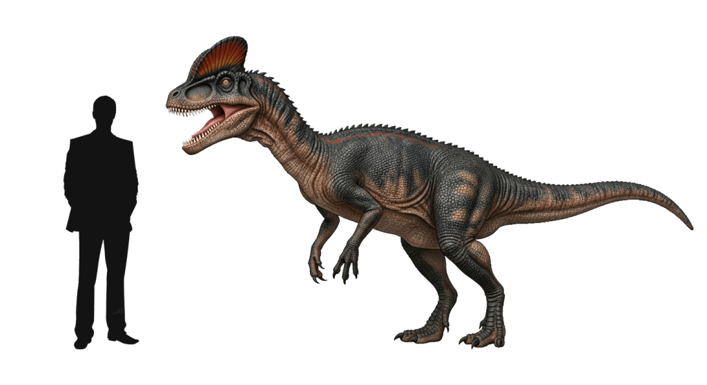 実際のディロフォサウルスは、ジュラ紀前期に北米に生息していた当時の大型肉食動物でした。