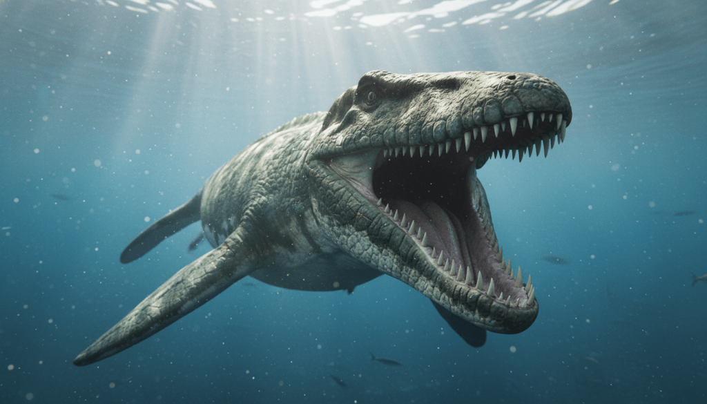 彼らの死は一瞬の出来事でしたが、モササウルスの圧倒的なサイズ感と、水中という逃げ場のない環境での捕食がいかに絶望的であるかを物語っています。