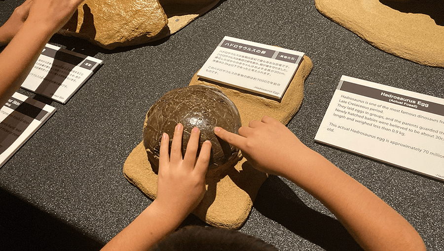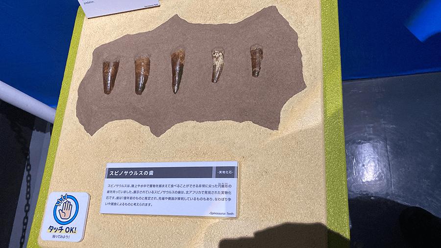スピノサウルスの実際の歯の化石を触れたのは、凄くいい体験になりました。