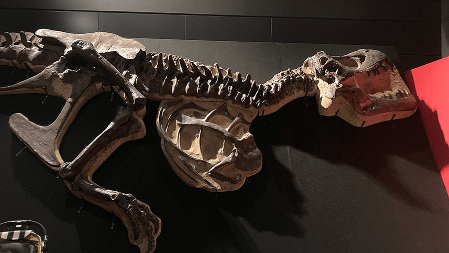 全身の7割近い骨が揃っている、世界的に完璧に近いティラノサウルスの化石のレプリカです。