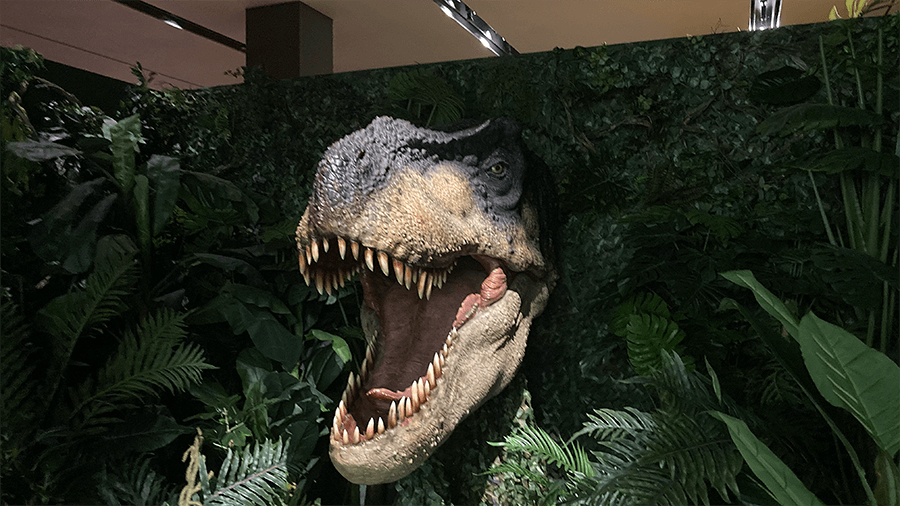 入り口にはすぐティラノサウルスの顔がお出迎え。